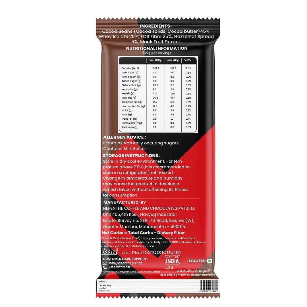 - High Protein- Our Chocolate bars are powdered with whey, rice and pea protein.
