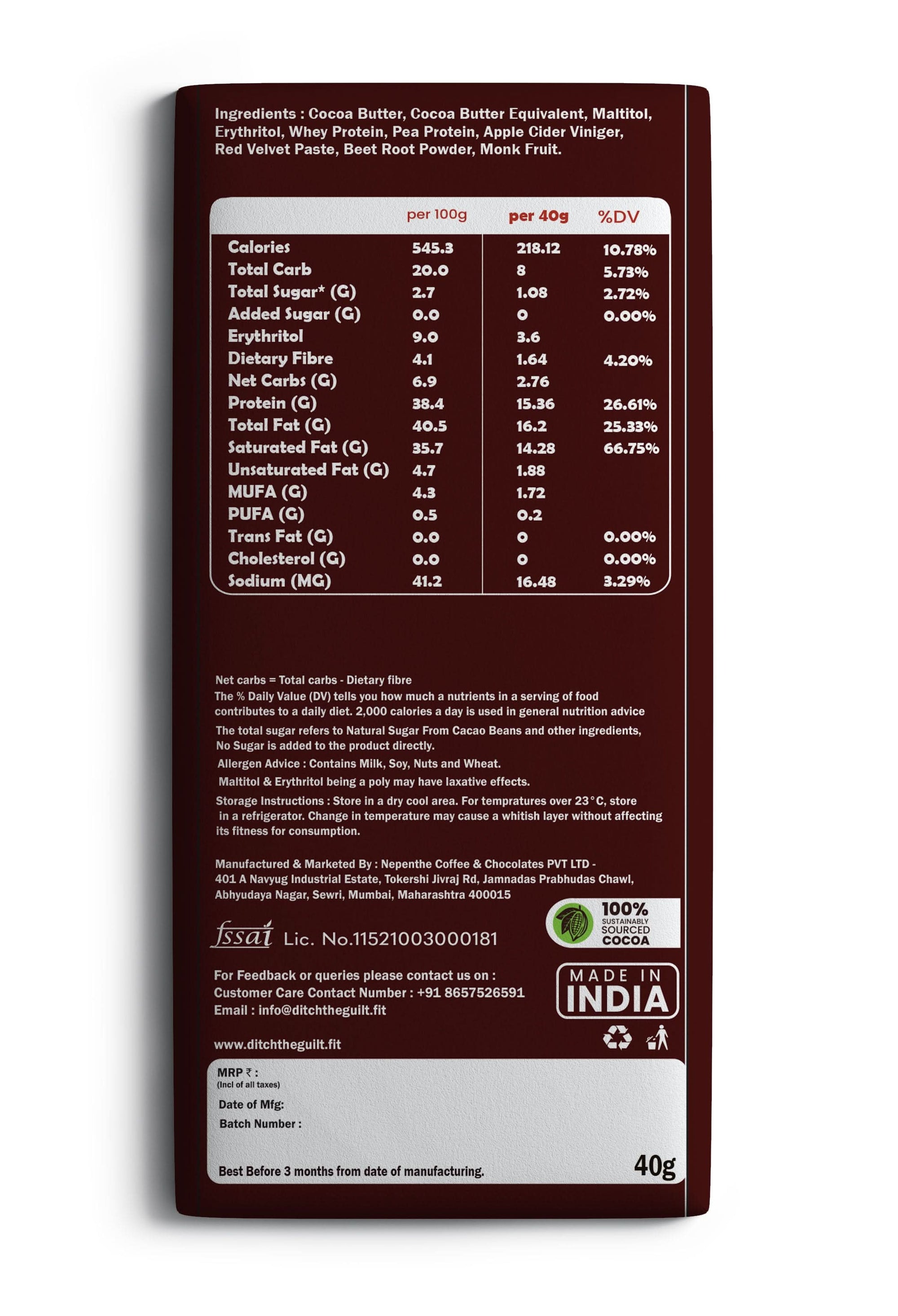 Red Velvet Cheese Cake • 15g Protein • Sugar Free White Chocolate • 40g