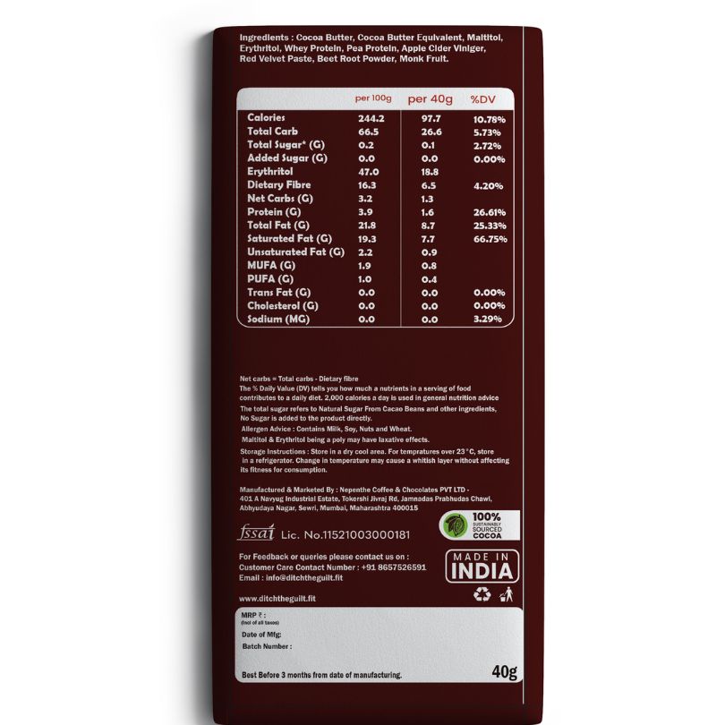 Red Velvet Cheese Cake White Chocolate • 97 Calories • Sugar Free & Low Cal • 40g