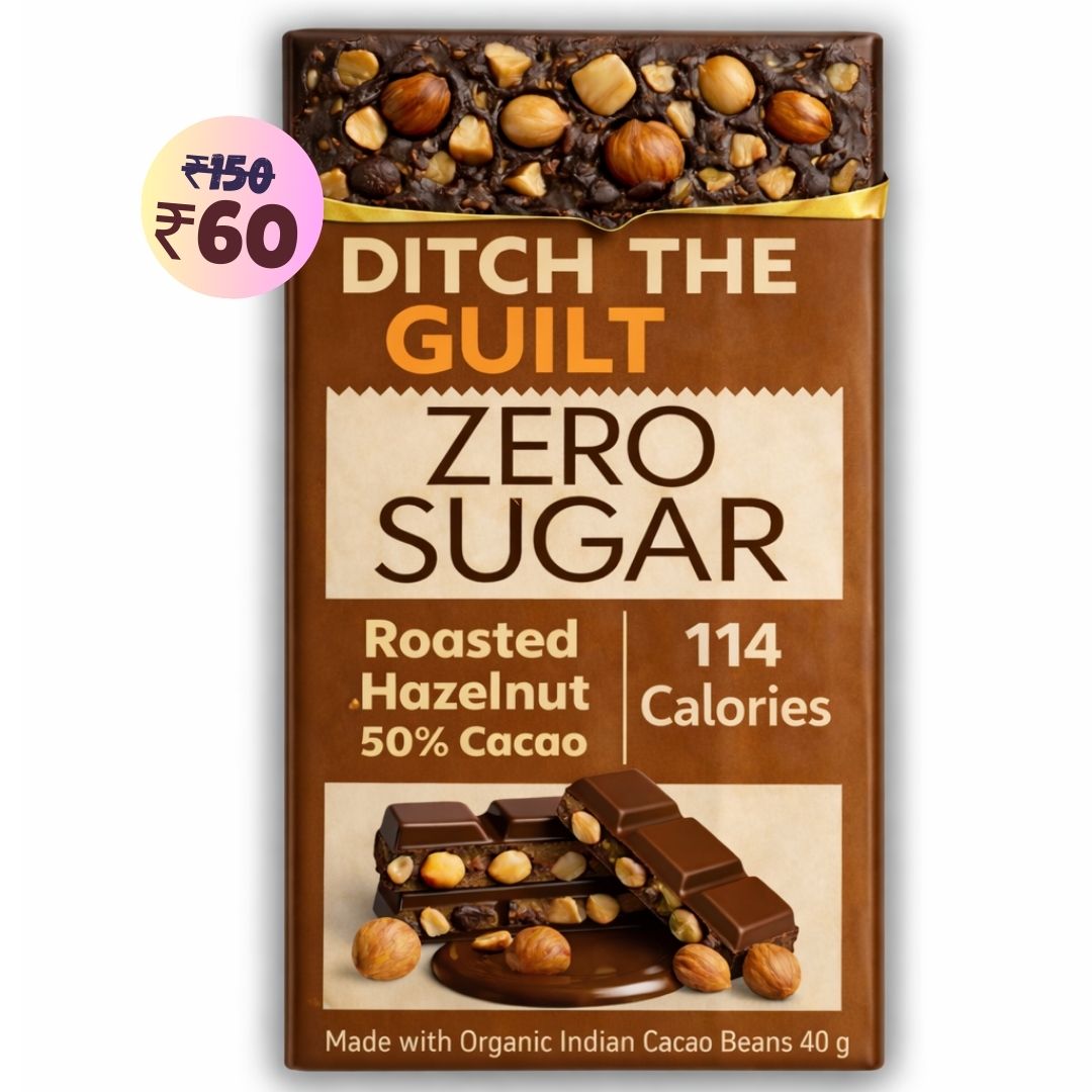 Mighty Hazelnut Dark Chocolate • 114 Calories • Sugar Free & Low Cal • 40g