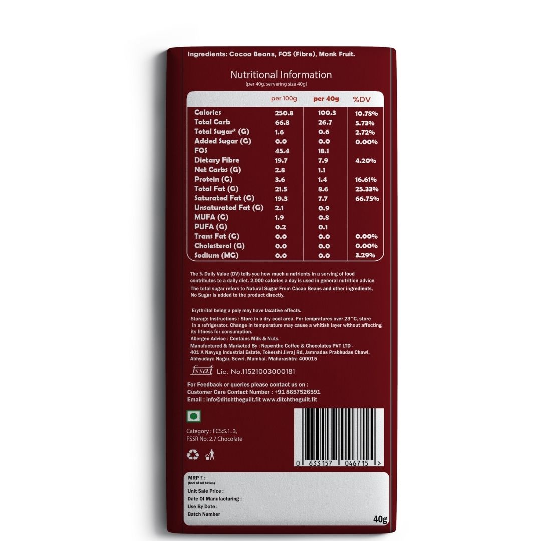 Death By Chocolate • 100 Calories Only • Low Calorie Sugar Free Dark Chocolate • 40g bar