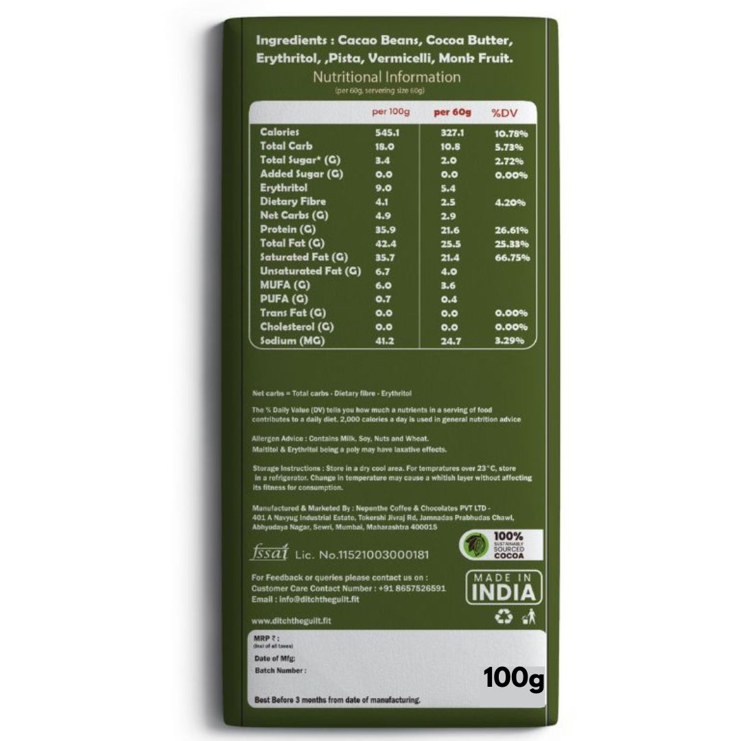 Dubai Pista Kunafa • 22g Protein • Center Filled Sugar Free Dark Chocolate • 100g bar
