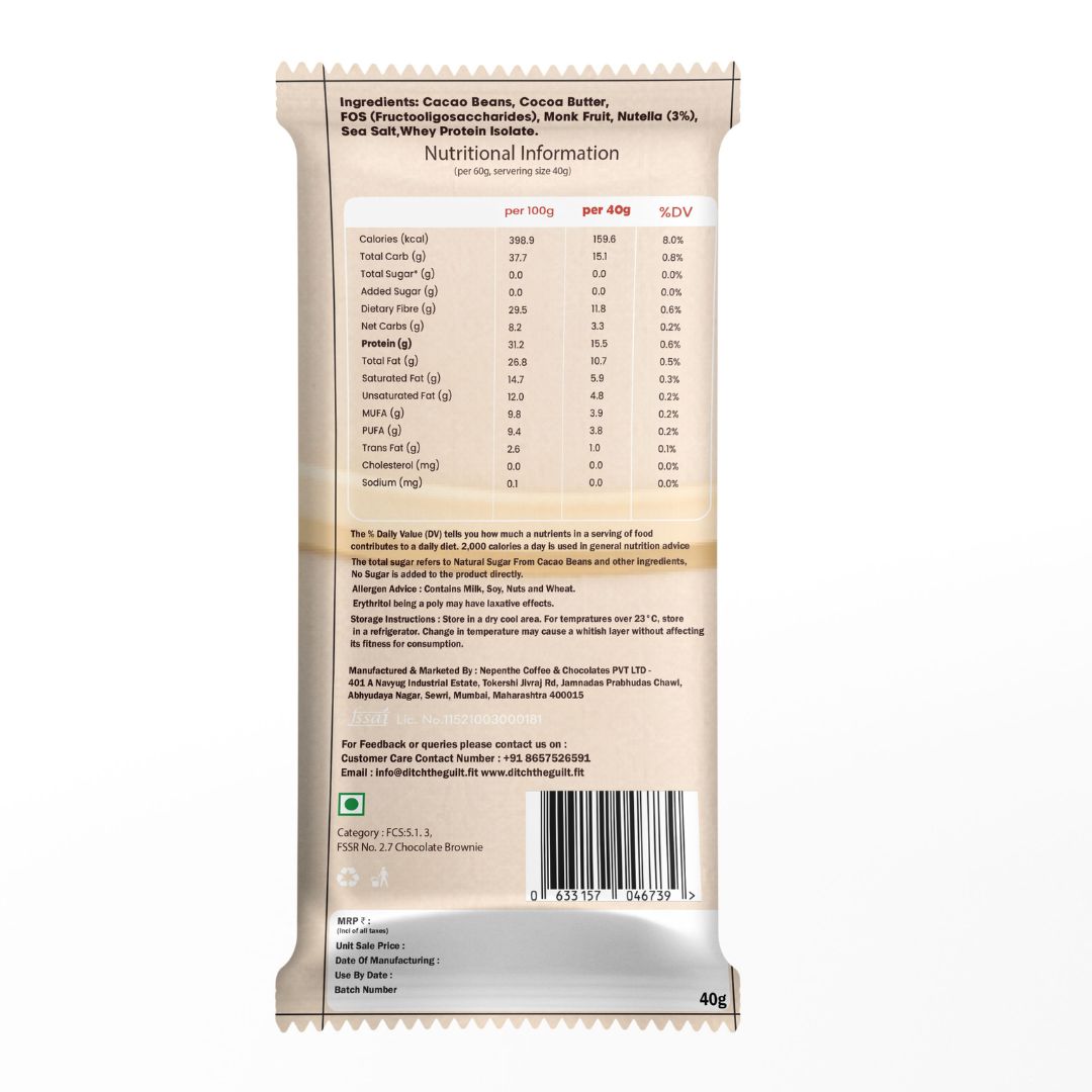 Nutella & Sea Salt Protein Brownie • 14g Protein • Sugar Free & High Protein • Low Net Carbs • 40g