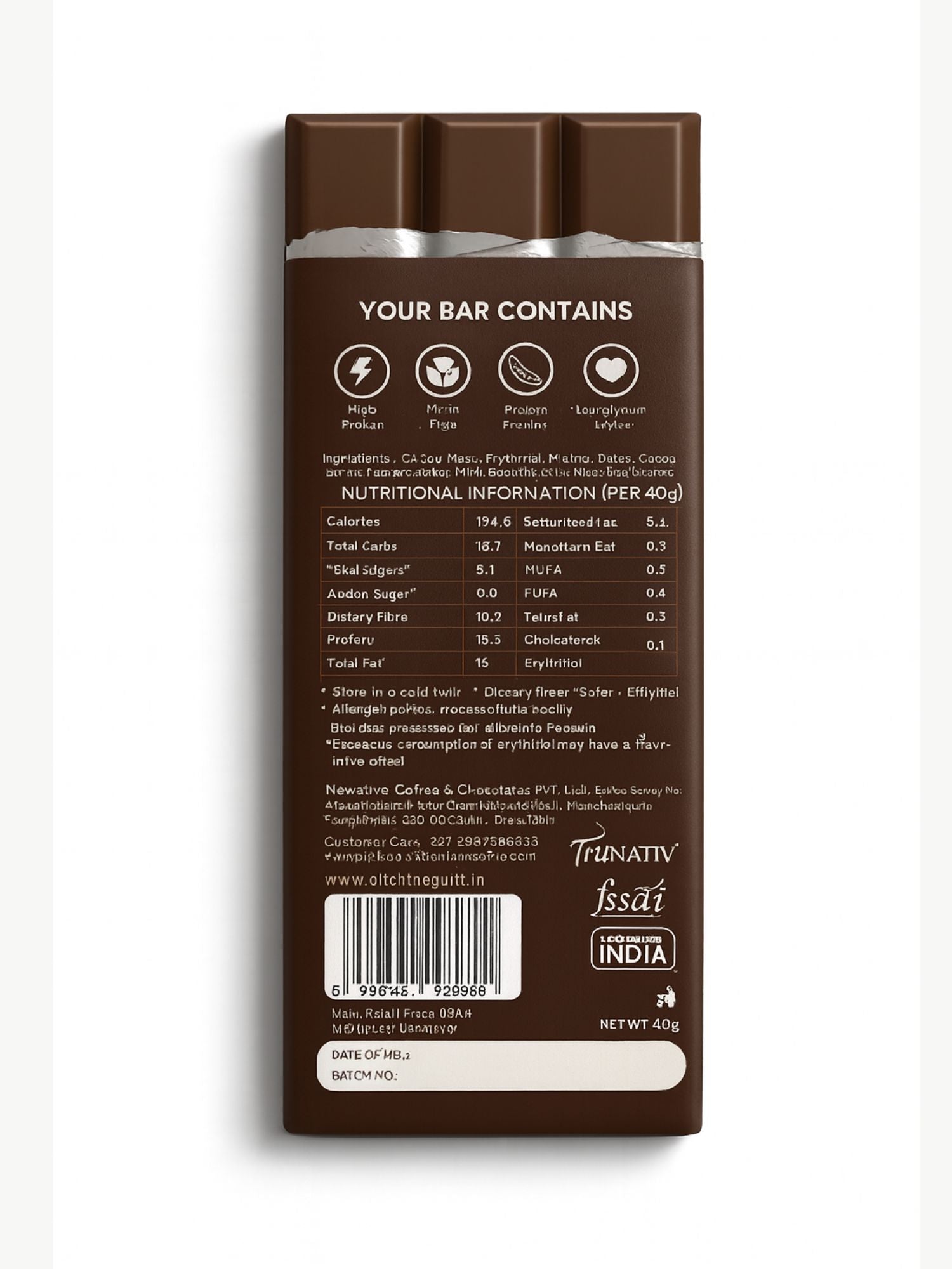 Crunchy toasted walnuts blend into smooth Indian cacao for a deeply satisfying bar that’s as nourishing as it is indulgent. With 17g of protein and no added sugar, it’s a wholesome bite of rich flavor—sweetened naturally with monk fruit for clean, balanced energy.